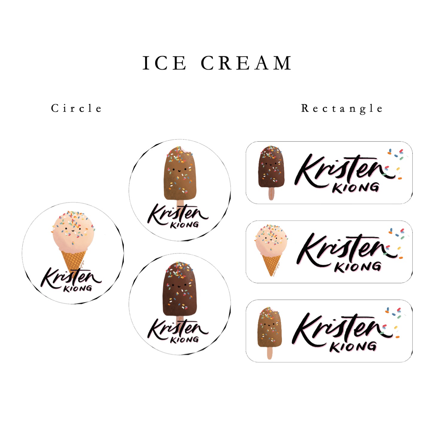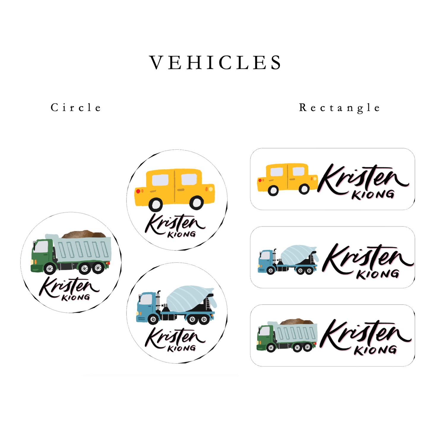 Girl sticker, Boy sticker, Ice-cream themed, Vehicles, Animals, Sea creatures, Bread, Unicorns and Rainbows